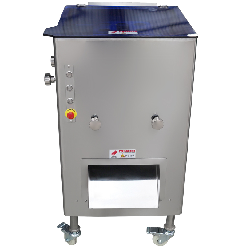 本公司生产的切肉丝肉片机,机身整体都采用了304不锈钢进行制作,钢板的厚度可达到3mm,底部配备万向轮方便移动固定。