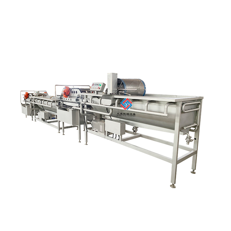 蔬菜清洗加工生产线/流水线配备了提升机、清洗机、振动沥水机,可以将蔬菜经过两道清洗工序之后沥水干净,整条生产流水线设计合理,使用的过程中更加人性化,自动化程度较高、清洗效果好、物料不容易送到损坏,是目前蔬菜清洗加工和中方厨房的理想设备。