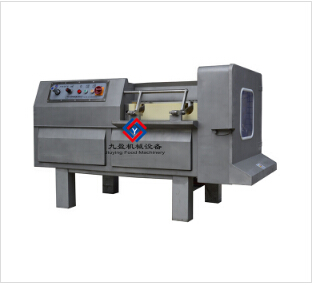 主要特点:调整厚度切割旋钮,可对推杆进行无级调速以满足不同切割厚度的要求。采用了预压力设计,保证在切割过程中使肉丁块状均匀。单刃切割时,肉料推杆作步进运动,保证切割尺寸准确。