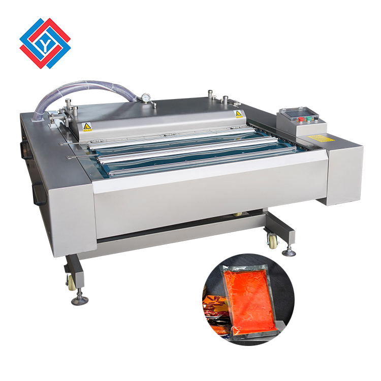 2、传送带采用进口材料,强度高,耐腐蚀,抗磨损,重量轻。全铝合金组合电机。加热元件全部安装在上工作室内,可避免受包装物品(特别是液体)的影响而造成的短路故障,并设计了水冷保护系统,加热条的使用寿命高于同类产品。定位式工作室在一个工位上垂直升降重复作业,可靠准确。工作台面角度可调,操作方便,效率高,非常适合带汤汁食品的真空(充气)包装。